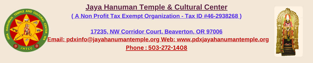 Contact 503-272 -1408 or email us at pdxinfo@jayahanumantemple.org